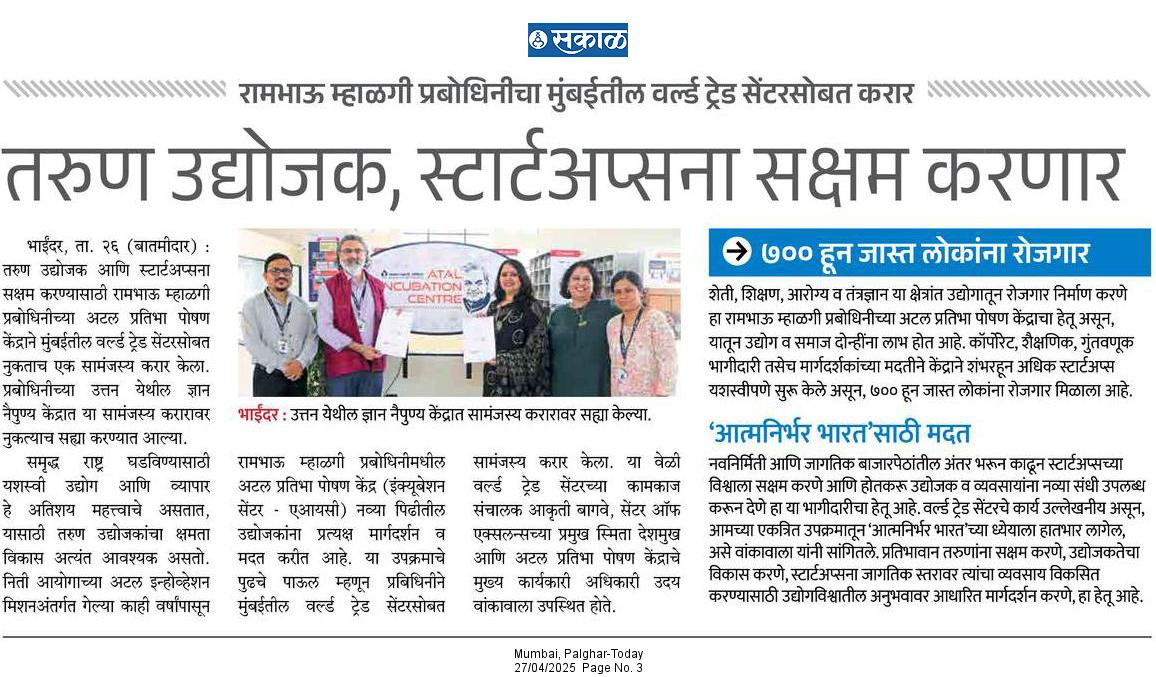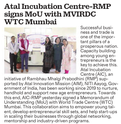 AIC-RMP MoU with MVIRDC World Trade Centre Mumbai